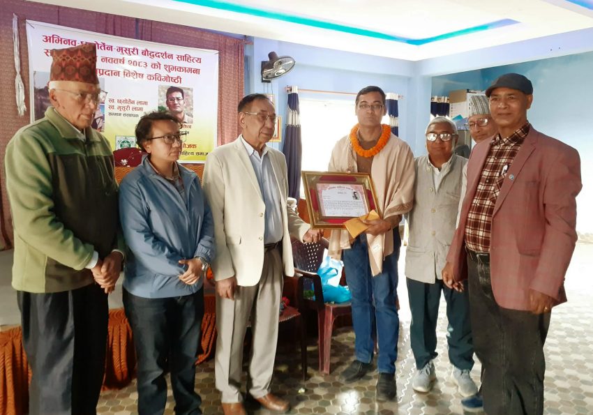 बुद्ध र बौद्ध दर्शनसम्बन्धी निरन्तर अध्ययन, अनुसन्धान तथा लेखनबापत “अभिनव-छ्योर्तेन-मुसुरी बौद्धदर्शन तथा साहित्य सम्मान २०८२” बाट नगद रुपैयाँ पच्चीस हजार सहित सम्मानित भएको छु । छ्योर्तेन लामा र मुसुरी लामाको नामबाट अभिनव साहित्य समाज, जोरपाटीद्वारा स्थापित यो सम्मान बौद्ध धर्मदर्शनमा योगदान दिने एक साधकलाई प्रत्येक वर्ष प्रदान गर्ने गरिन्छ । यसअघि दुई जना साधक सम्मानित…